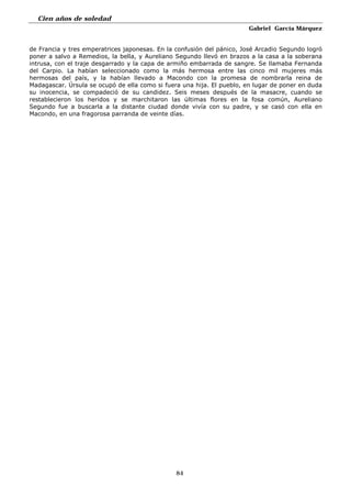 Cien aos de soledad es la obra maestra de Garca Mrquez y fue escrita en 1967 y retrata la historia de un pueblo que pasa por todas las etapas de la evolucin en tan solo 100 aos. Scribd adalah situs bacaan dan penerbitan sosial terbesar di dunia. Cien Aos de Soledad Gabriel Garca Mrquez.